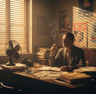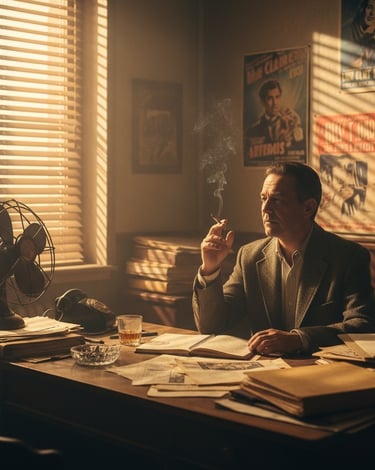 Aujourd’hui je suis détective privé. Sans plaque dorée, sans secrétaire, sans illusions. Mon bureau trône au-dessus du vieux cinéma Le Caprice, porno défraîchi, velours usé et fantasmes en promotion permanente. Quand le vent souffle mal, ça sent la poussière chaude et la honte recyclée. J’ai un ventilateur poussif, un briquet fidèle et un carnet qui en sait trop. C’est pas un bureau, c’est un mirador sur la misère humaine.